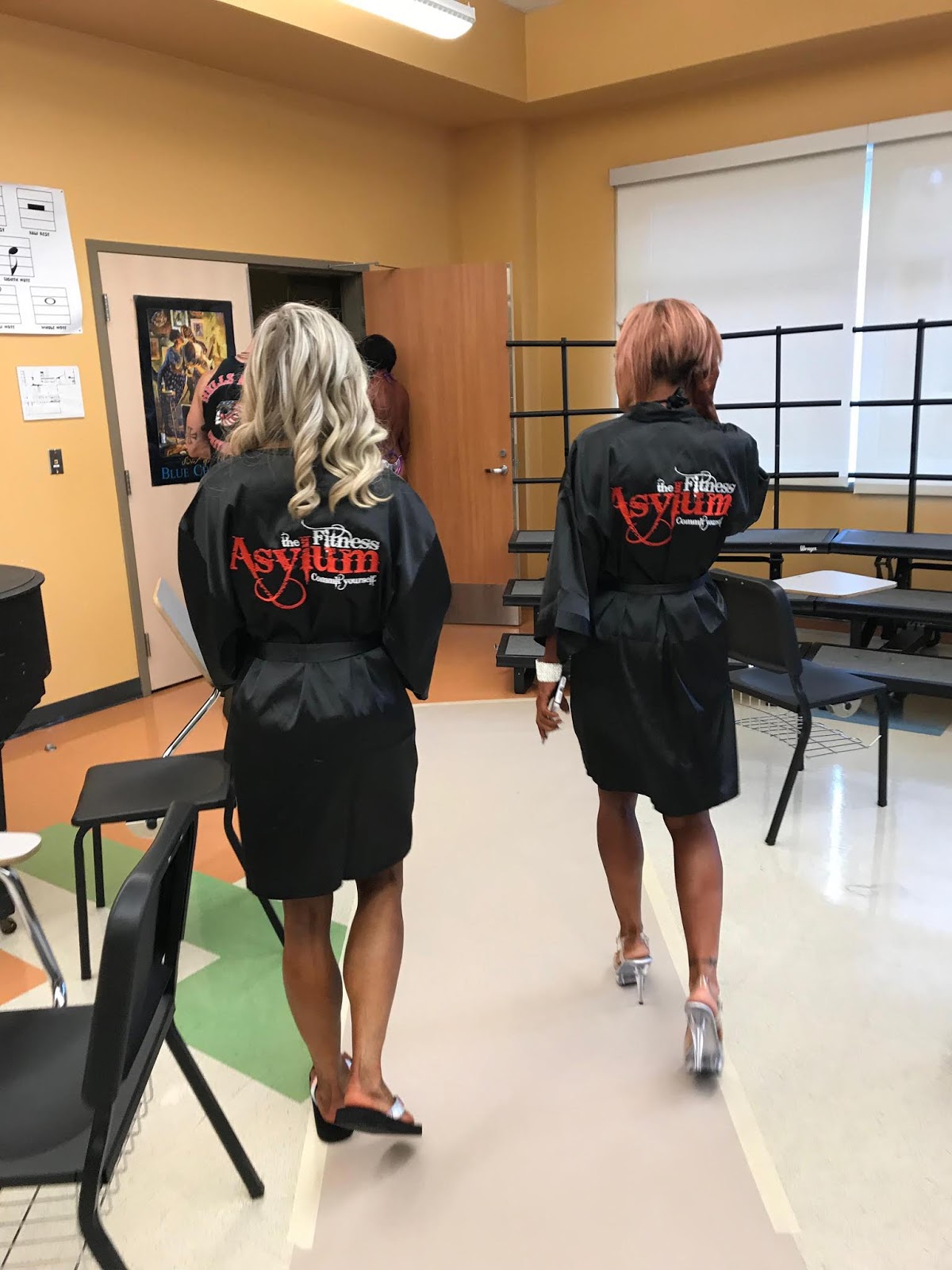 Pumping up before we head to the stage. Some of us pump up in heels,
