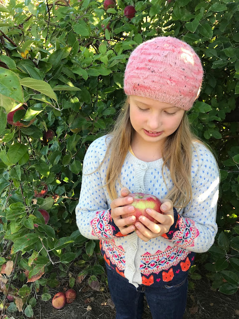 Since it was finally on the cooler/more autumnal side Tuesday morning we decided to eat a quick breakfast and head to George Hill Orchards to do some apple picking. We had been waiting for the weather to be more seasonal so that we could go (as it just doesn't feel right to us to pick apples in anything other than cozy clothes). We arrived and other than one small preschool group we basically had the place to ourselves! It was divine! We made our way over to the Cortland section and in no time at all the girls had filled their bags. With filled bags of apples and a bag of cider donuts we made our way back home, with plans to return some time next week to pick some more apples for the express purpose of canning applesauce! Happy autumn, friends! xo